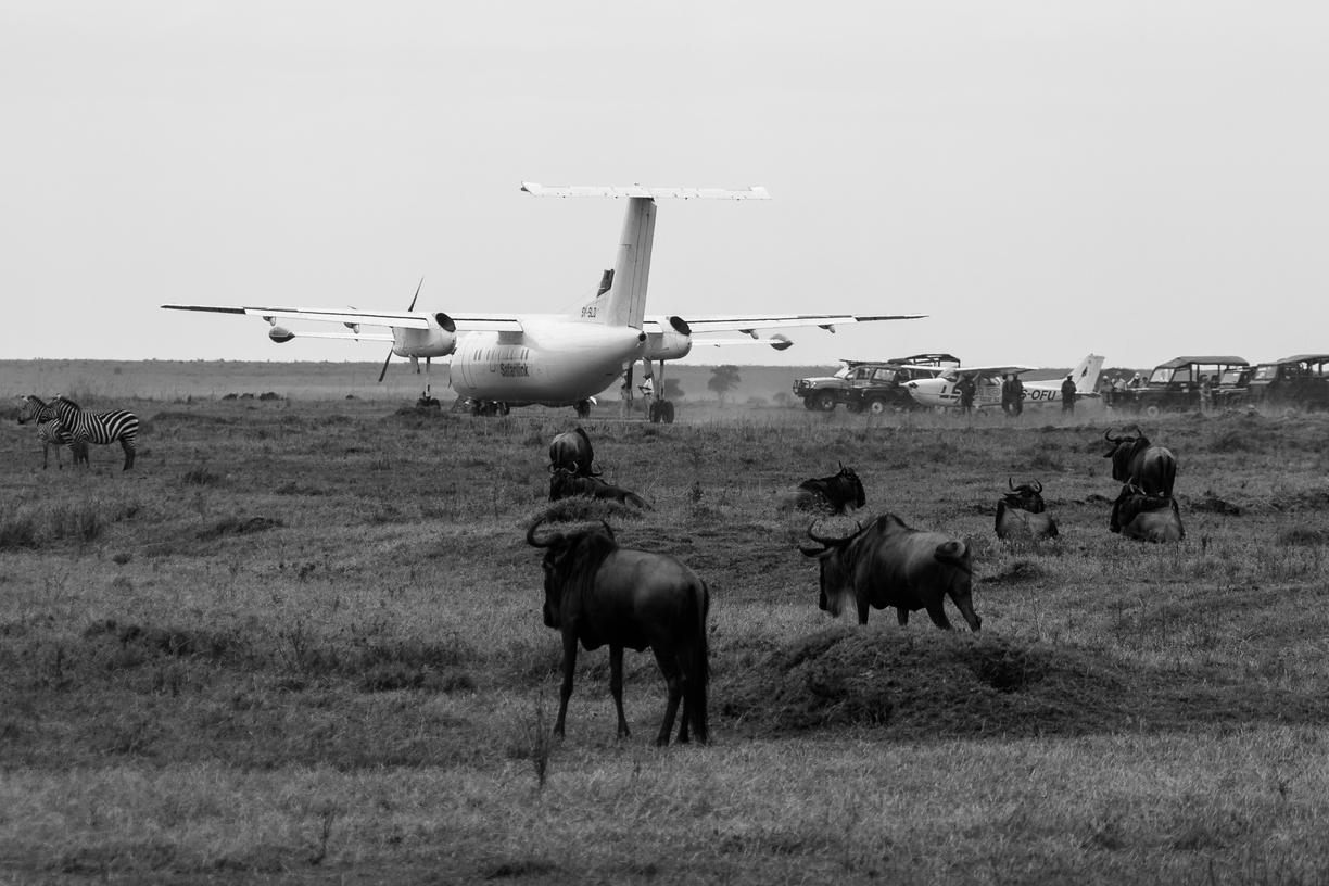 Following the meandering lines of the Great Migration, we stumbled upon a river crossing. Here, hundreds of Wildebeest gathered at the riverside, hooves dug firmly into the dirt, resisting the ever increasing pressure from the driving animals at the rear of the line. As the pressure built, one brave wildebeest took tentative steps down the riverbank…I’d watch, heart in my mouth, expecting to hear the splash of water. Time after time the panicked wildebeest would instead retreat up the banks and flee into the encroaching masses, causing mass hysteria and confusion. The mass of wildebeest would turn and retreat en mass. It was a dignified panic, characterised by no noise other than the thudding of hooves on the soft ground, as dust was thrown into the air. This is when I took the opportunity to take this shot.